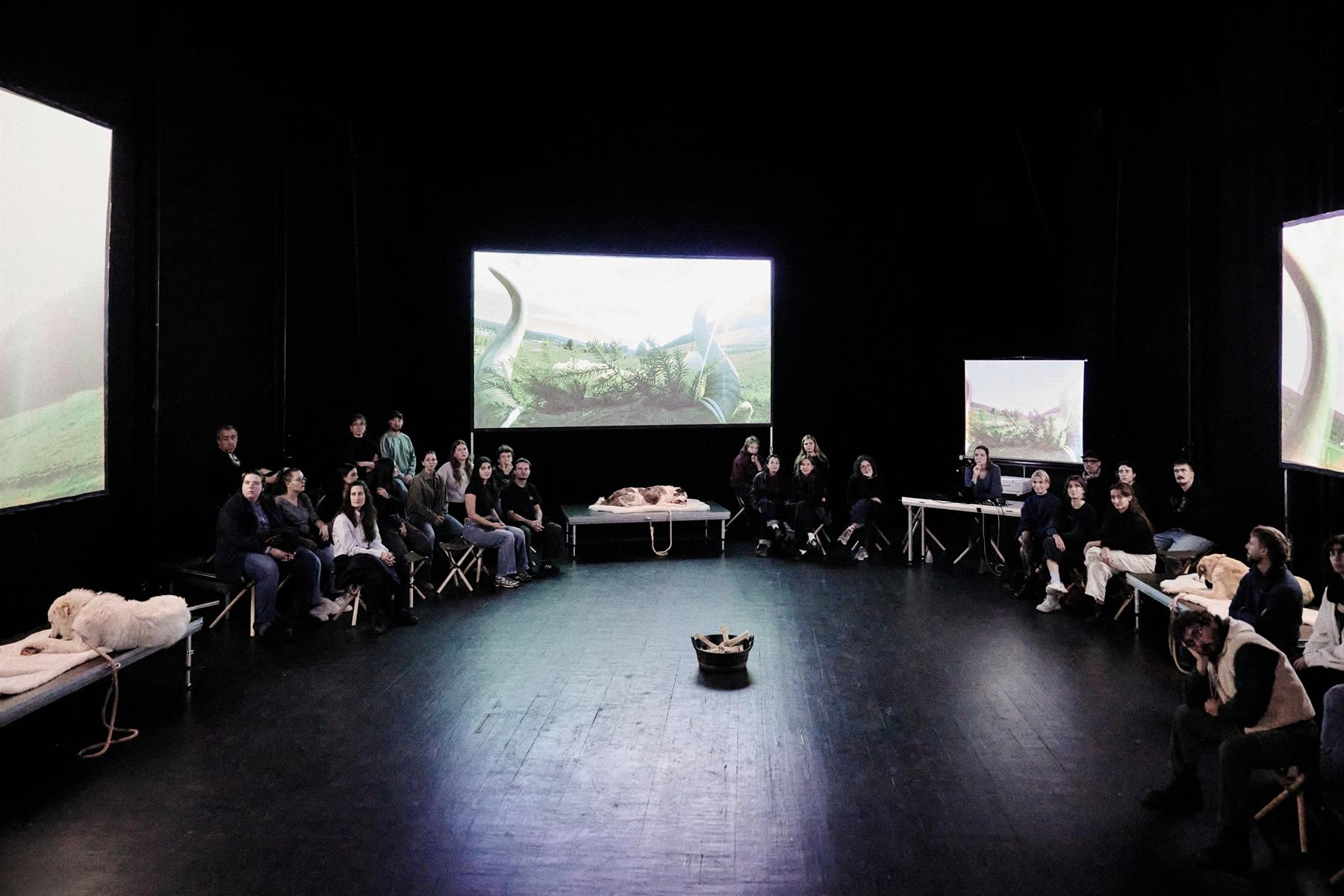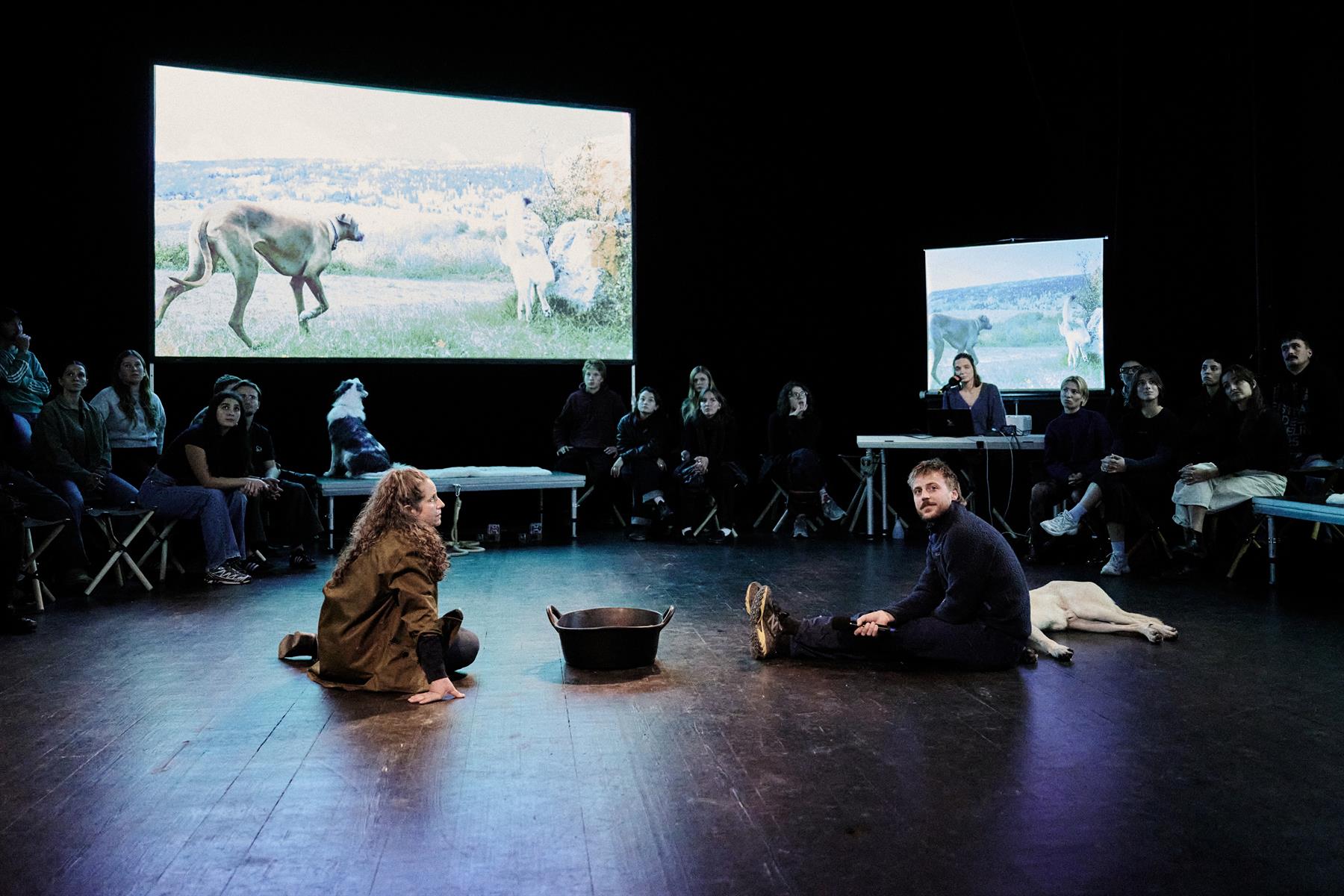 ShanjuLab est un laboratoire de théâtre qui interroge le lien humain-animal et propose des spectacles éveillant de nouveaux imaginaires. L’artiste et chercheuse franco-suisse Judith Zagury s’intéresse ici aux loups et à notre rapport à l’altérité et au sauvage. Après presque un siècle d’absence, les loups se sont réinstallés dans la région du Marchairuz (Jura suisse), à quelques pas de la compagnie ShanjuLab, qui s’est donc penchée sur ses nouveaux voisins. Dans une forme théâtrale d’un genre particulier, des comparses, accompagnés de chiens, nous font vivre leur enquête de terrain dans un dispositif vidéo et sonore immersif. Pistages, veilles nocturnes, interviews, observations, nous voilà plongés à leurs côtés dans une passionnante quête.