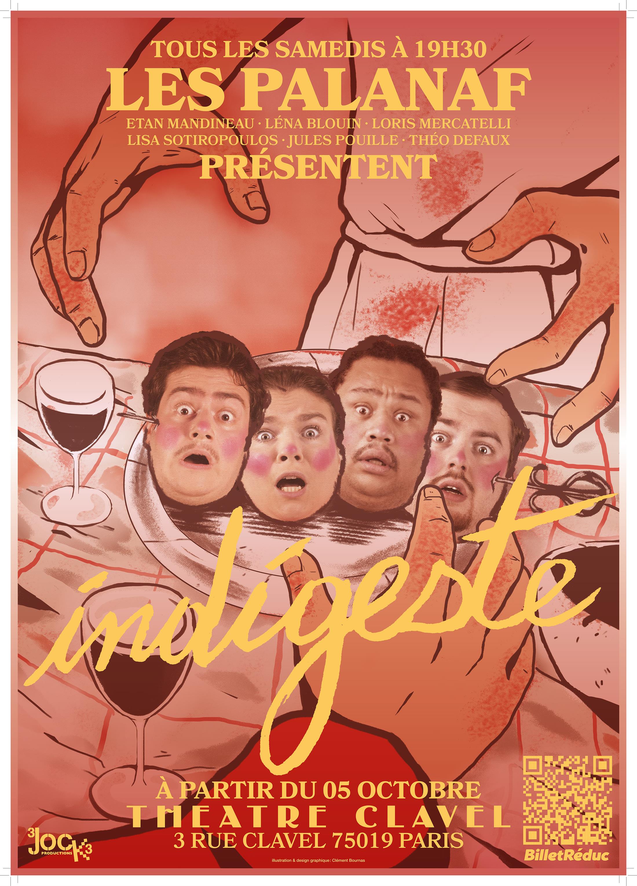 Indigeste, une pièce aux multiples facettes. Prenez le temps de savourer. Un peu de comédie, un soupçon de dérision, et beaucoup d'absurde.