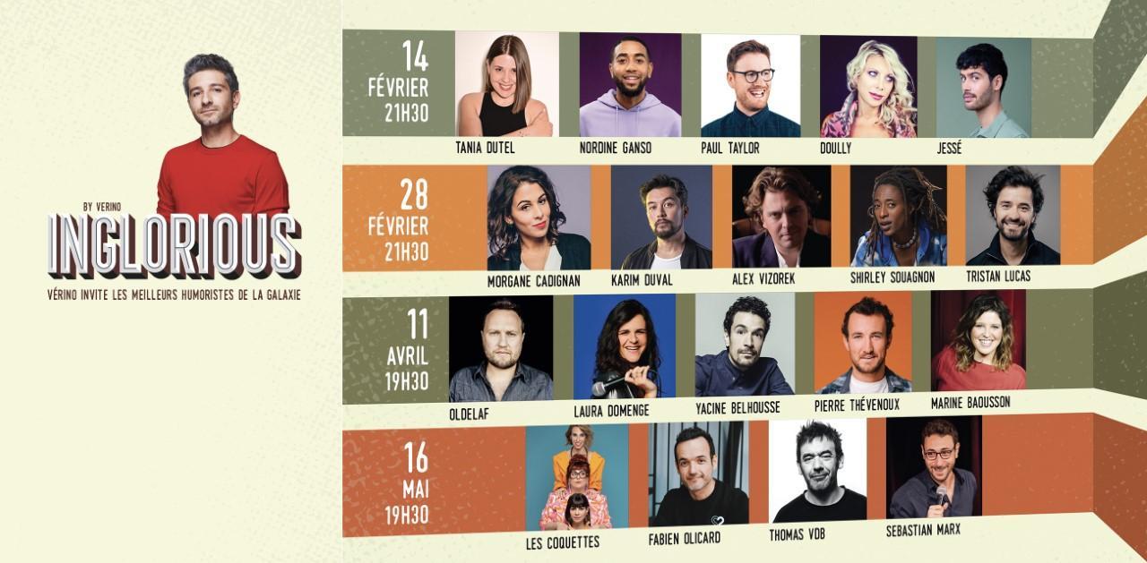 Venez à l’Inglorious Comedy Club. Venez rire de nos histoires, vous en sortirez Glorious.