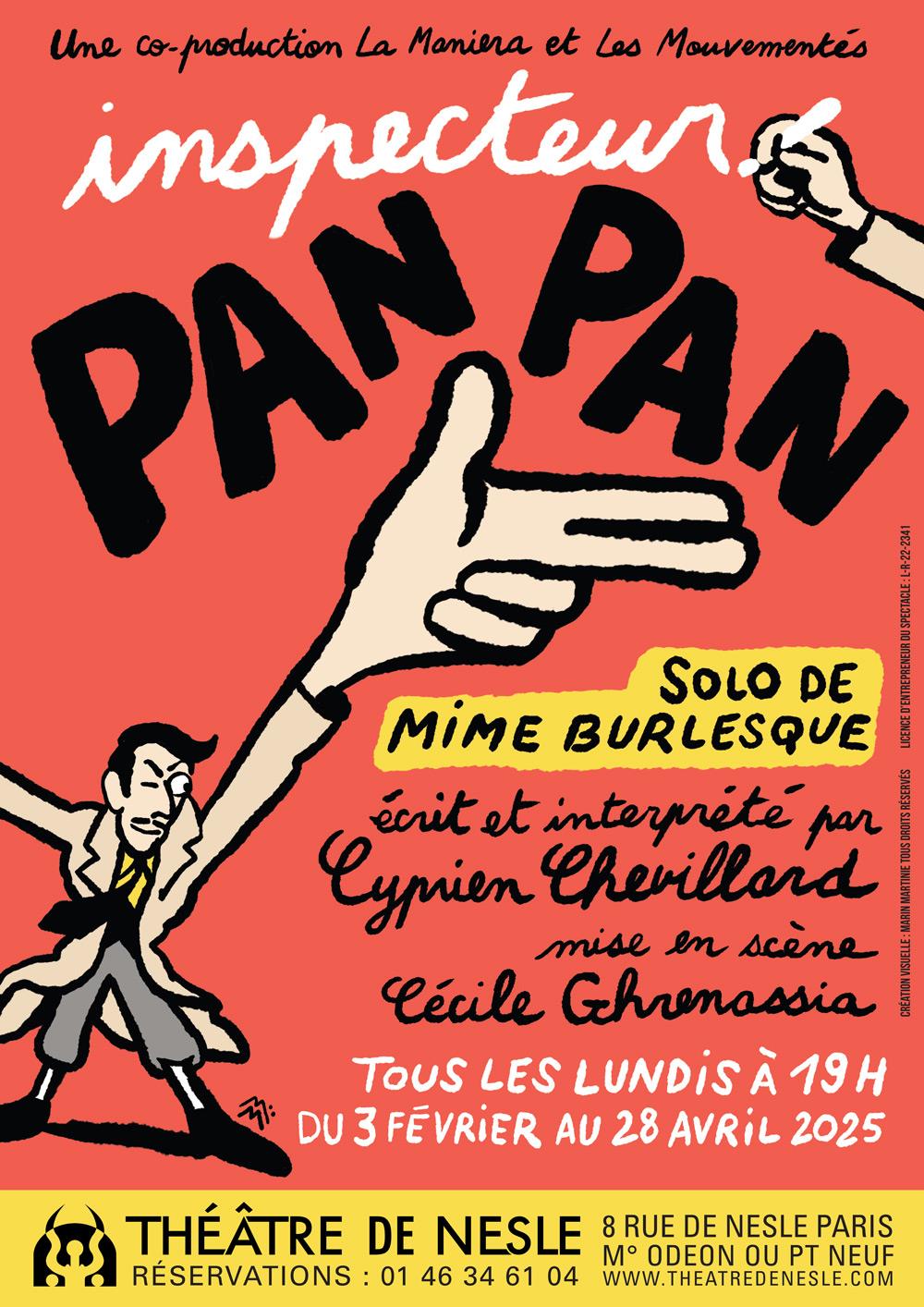 Un ban pour l’inspecteur Pan Pan qui nous entraîne sans mot dire dans une enquête pleine de rebondissements ! La poésie, la fantaisie et l’humour nous plongent dans un univers de BD et de cinéma muet où chacun peut retrouver un personnage qui lui parle. Un vrai talent !