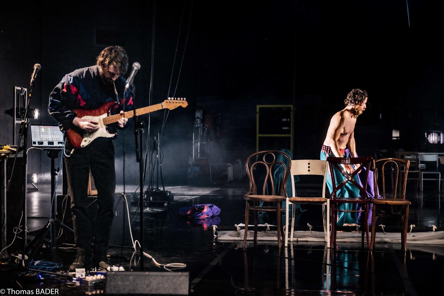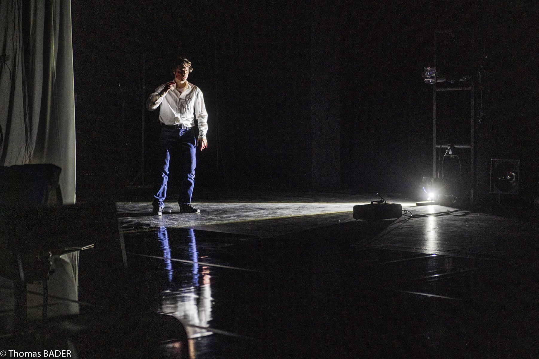 Le récit de traumatismes réels et la mise en scène de souvenirs fantasmés s’entrelacent et répondent à la réminiscence des œuvres traversées, dans un spectacle porté par la fougue de Sylvain Sounier et les fulgurances musicales de Maxime Kerzanet.