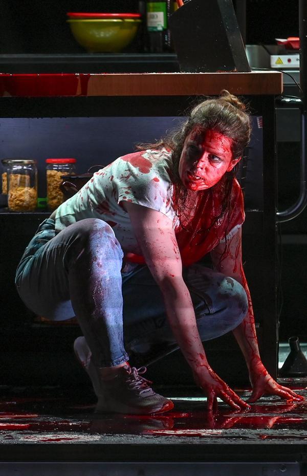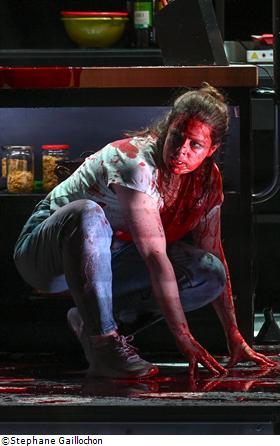 À partir d’un référentiel cinématographique et de dizaines de litres de faux sang, Mind The Gap met en place un redoutable jeu de massacre. Flirtant avec un théâtre de genre, elles mettent à nu la machine théâtrale, jouant à faire grincer les rouages de la représentation jusqu’à ce qu’elle apparaisse comme une véritable manufacture du meurtre.