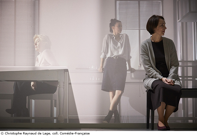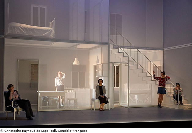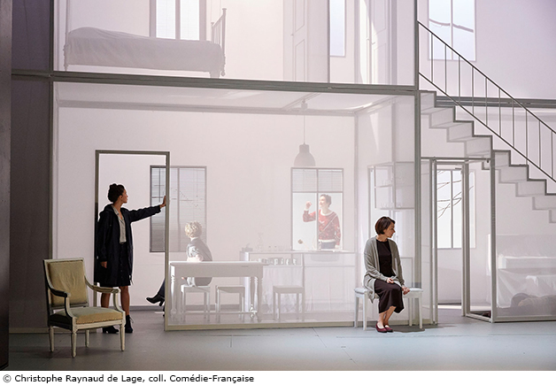 Cette pièce féminine, écrite par un homme, est confiée à Chloé Dabert qui signe, après Nadia C., sa deuxième mise en scène avec la Troupe. Elle rassemble une famille d’actrices à même d’incarner ces grands rôles du répertoire contemporain, proches des Trois Sœurs de Tchekhov, qui cherchent dans le flot des mots l’expression la plus juste de soi, avec maladresse parfois, colère ou joie. Cette partition fluide et rythmée invite à un travail précis, métronomique, mené ici comme une étape nécessaire à un jeu libre.