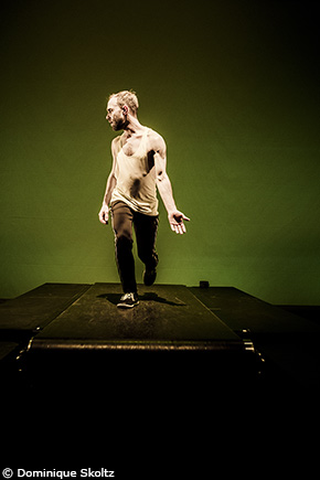 Voyons la situation pour l'interprète : confiné dans un espace restreint, d'où émane, de surcroît, le tempo de ses pas. Le paradigme de l'espace-temps s'en trouve remanié. La partition des gestes est fort impérative. Mais très ouverte la gamme des adaptations interprétatives. L'intuition, voire l'improvisation sont physiquement de la partie. Suspensions, inclinaisons, gestion de la gravité fondent un jeu de fuites ici, et là de courses bien en avant. Il y a l'astreinte. Il y a la danse. Et encore l'épuisement.