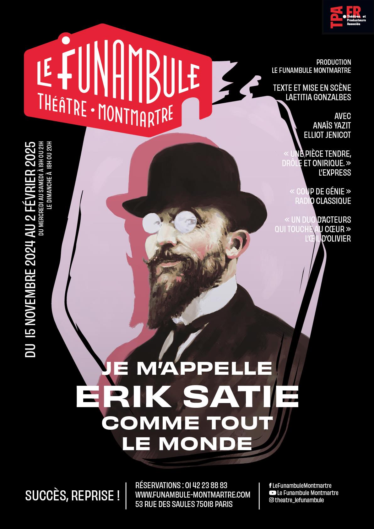Je m’appelle Erik Satie comme tout le monde conte la vie de cet homme original, à travers une fiction pleine d’ironie, surprenante, musicale, esthétique… à l’image du compositeur.