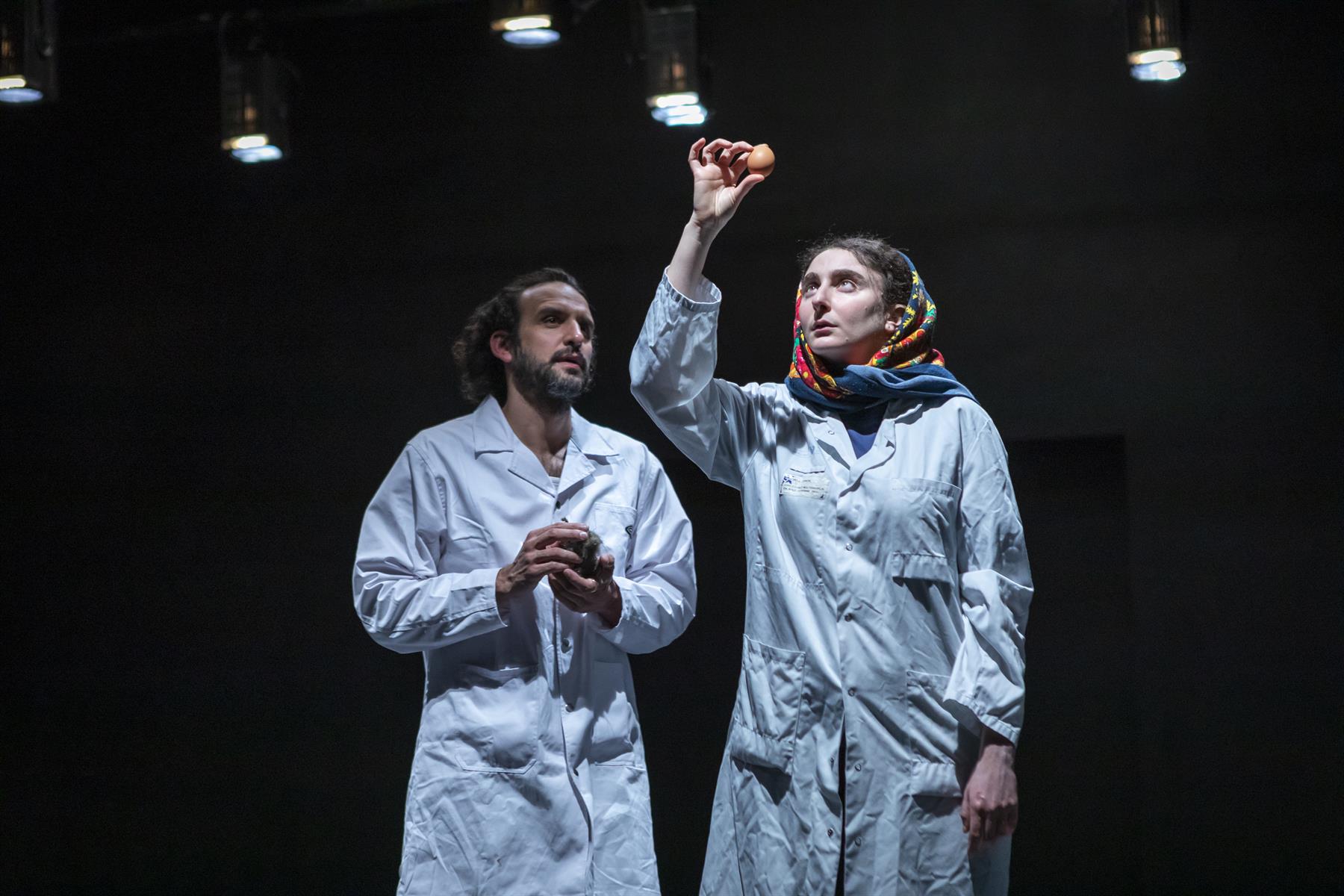 Ça démarre par une situation en apparence banale. Un demandeur d’asile est hébergé par une jeune Française. Une menace, réelle ou imaginaire, s’insinue peu à peu dans leur quotidien. On glisse ensuite dans le vaudeville : des comédiens répètent une pièce d’un auteur syrien qui parle des Parisiens, mais comment les incarner ? On aboutit enfin au polar au sein d’un labo de recherches, chacun se méfiant de l’autre.