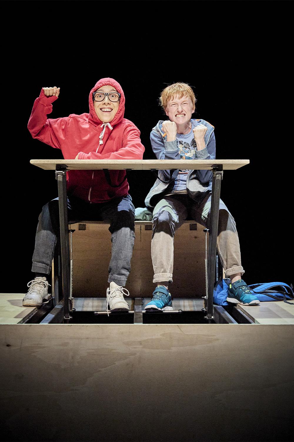 En trois spectacles, le jeune héros du triptyque de David Lescot n’a vieilli que de quelques mois mais a beaucoup grandi. Terrorisé à l’idée d’entrer en sixième dans J’ai trop peur, il fait ses premiers pas au collège dans J’ai trop d’amis, avant de partir en classe verte dans Je suis trop vert