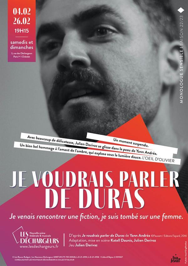 D’après Je voudrais parler de Duras de Yann Andréa.