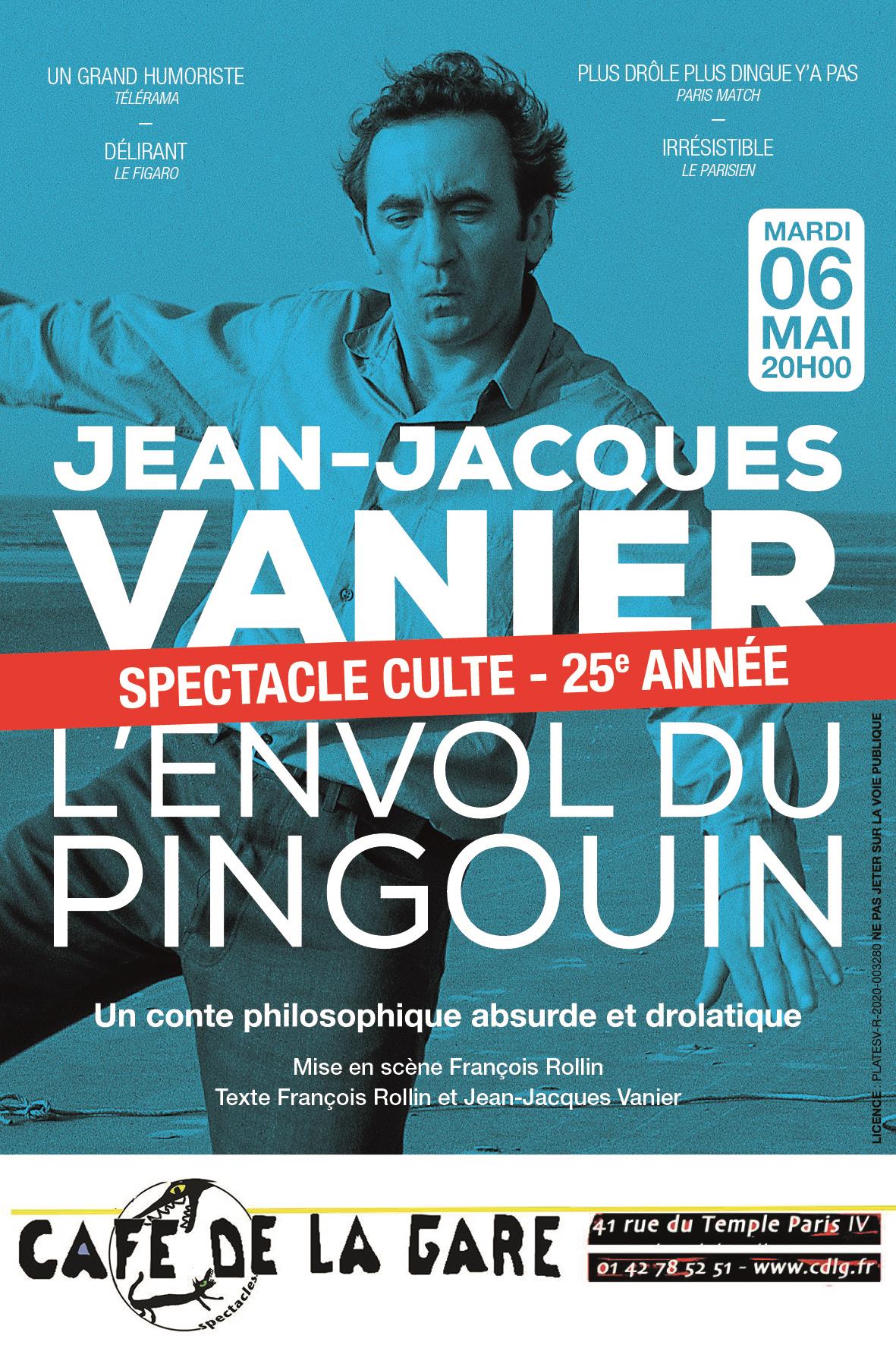 Cousin germain des Devos et Desproges, Jean-Jacques Vanier nous emmène dans les nuages grâce à L’Envol du pingouin, mis en scène par l’ami François Rollin.