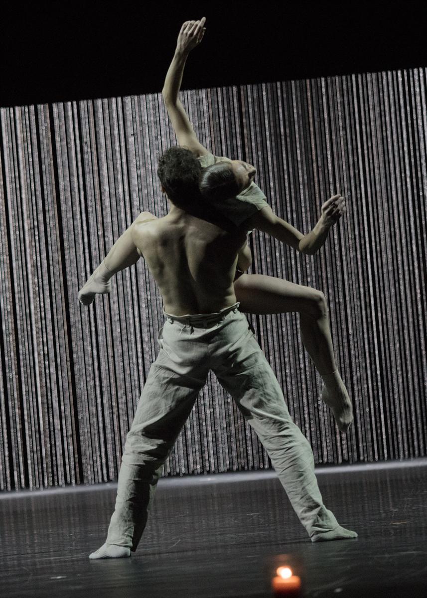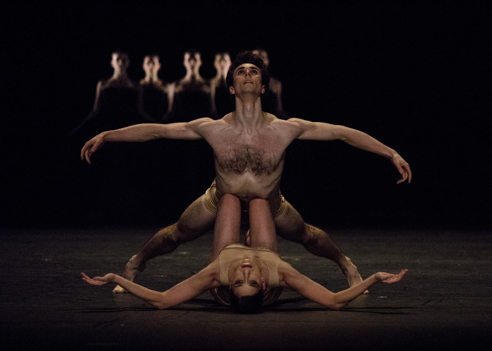 Deux nouvelles pièces de Jiří Kylián entrent au répertoire du Ballet cette saison : Sechs Tänze prolonge l’univers mozartien et le caricature dans une série de danses à l’humour décalé, tandis que Gods and Dogs s’intéresse à la limite entre normalité et folie : quand les chiens deviennent dieux et inversement. Dans une lumière bleu nuit, les danseurs évoluent devant de fines cordes qui évoquent celles d’un quatuor de Beethoven.