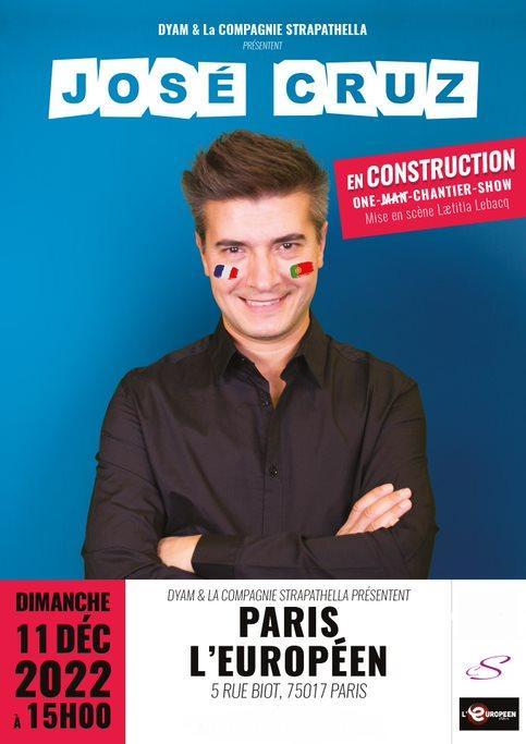 Avec son premier one-man-show Ola !, José Cruz a réuni plus de 60 000 spectateurs à travers toute la France, la Belgique, la Suisse, le Luxembourg et le Portugal. Sa vidéo « La Trottinette Portugaise » a fait le buzz sur Internet avec plus de 20 millions de vues. Avec En Construction, sur scène, il mélange personnages et stand-up pour vous raconter sa vie mais aussi la vôtre...