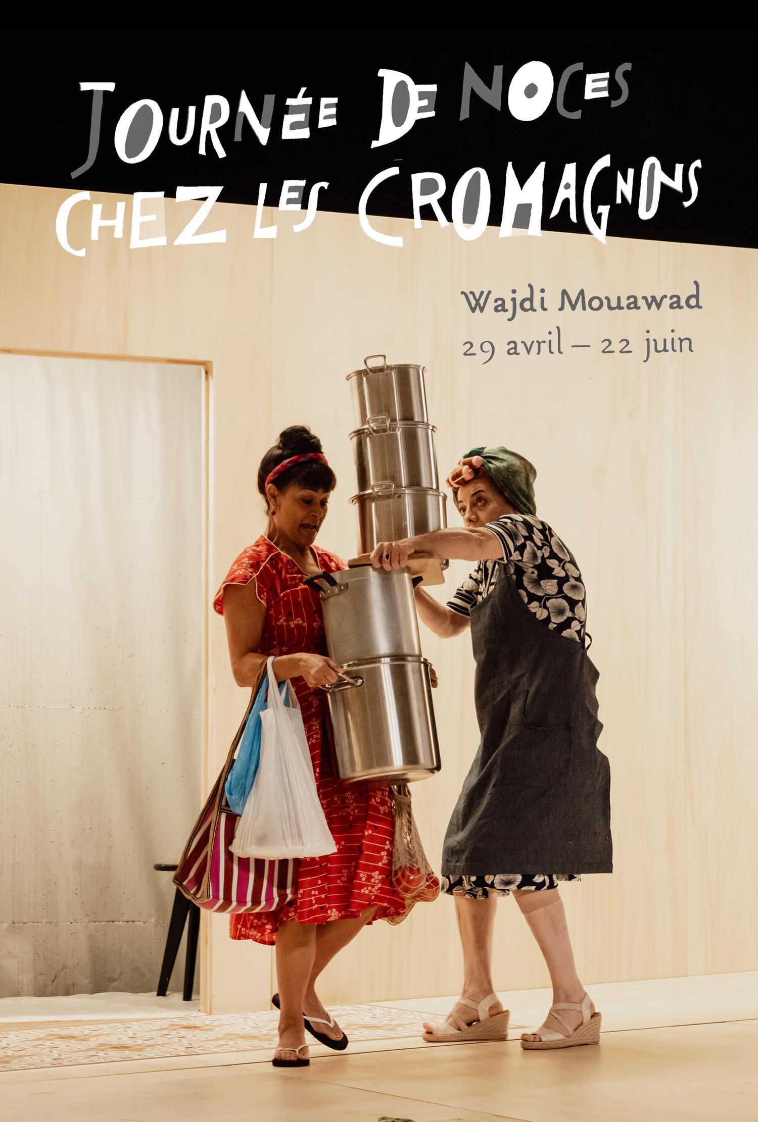 Bienvenue chez les Cromagnons ! une famille libanaise qui, dans son quotidien, se débat comme tant d’autres, entre les bombes, les orages et les coupures d’électricité. Jamais mise en scène par le dramaturge lui-même jusqu’alors, Wajdi Mouawad choisit de proposer Journée de noces chez les Cromagnons dans sa langue maternelle avec une équipe essentiellement libanaise. Spectacle en libanais surtitré en français.
