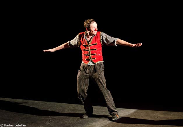 Julien Cottereau joue avec un nez rouge ou sans, seul ou accompagné, un ballet mimé et fou sans paroles. Le personnage de Bibi nous fait découvrir sa vision d’un cirque idéaliste, loufoque, déraisonnable où défileront artistes déjantés, acrobates peureux, équilibristes amoureux, animaux récalcitrants, et, le clown. Grâce à l’humour, se venger des dictatures. S’émouvoir. Rire. Ordonner l’impossible, les échelles de valeur, de temps comme d’espace, devenant aussi élastiques que nos esprits délirants. Avec Bibi, croire en un monde sans frontières apparentes.