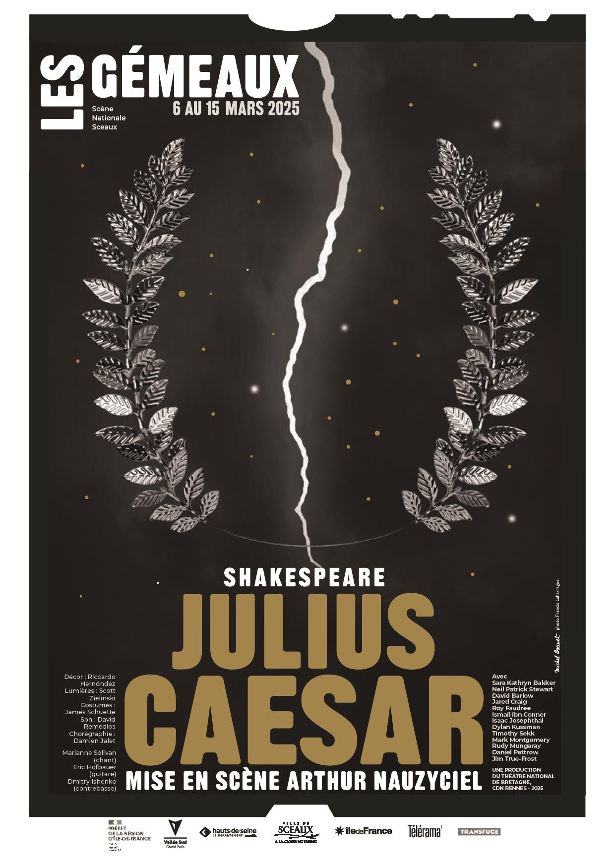 Selon les Gémeaux c’est : « Magistral ! » Excessif. Ce spectacle nous fait certes connaitre le texte de Shakespeare, Acteurs, chanteuse et musiciens maîtrisent leur art. Le début nous donne à voir la conspiration ourdie contre César. Texte dit très à plat, sans intention ni sous-texte; vraiment sans rythme. Le plateau s’anime un peu avec la scène entre Brutus et son épouse Portia puis, plus tard, avec l’assassinat du tyran. Là, la mise en scène souffre de son défaut principal : juxtaposer des partis pris fort différents. Des couteaux virtuels mais une béante plaie grand-guignolesque. À d’autres moments, on hésite entre le trivial et le prétentieux boursouflé. On part sur une esthétique des années 1960 (pourquoi ? on n’apprend rien sur cette époque) puis on l’oublie. On voit apparaître puis disparaître champagne et smokings, sans bien comprendre pourquoi. On passe de la Rome antique au jazz; très belles prestations de la chanteuse Marianne Solivan, dans des titres dont le lien avec l’intrigue aurait souvent gagné à être mieux explicité. À la fin (les luttes pour le pouvoir après la mort de César), on hésite de nouveau, cette fois entre des joutes verbales enfin soutenues et des passages sans le moindre rythme, voire des plateaux vides pendant de longues secondes. Ajoutons que, si le texte anglais de Shakespeare semble respecté, les surtitres n’y collent pas toujours, avec des phrases qui sautent, et - c’est crispant - un Marc Antoine rebaptisé Antony.