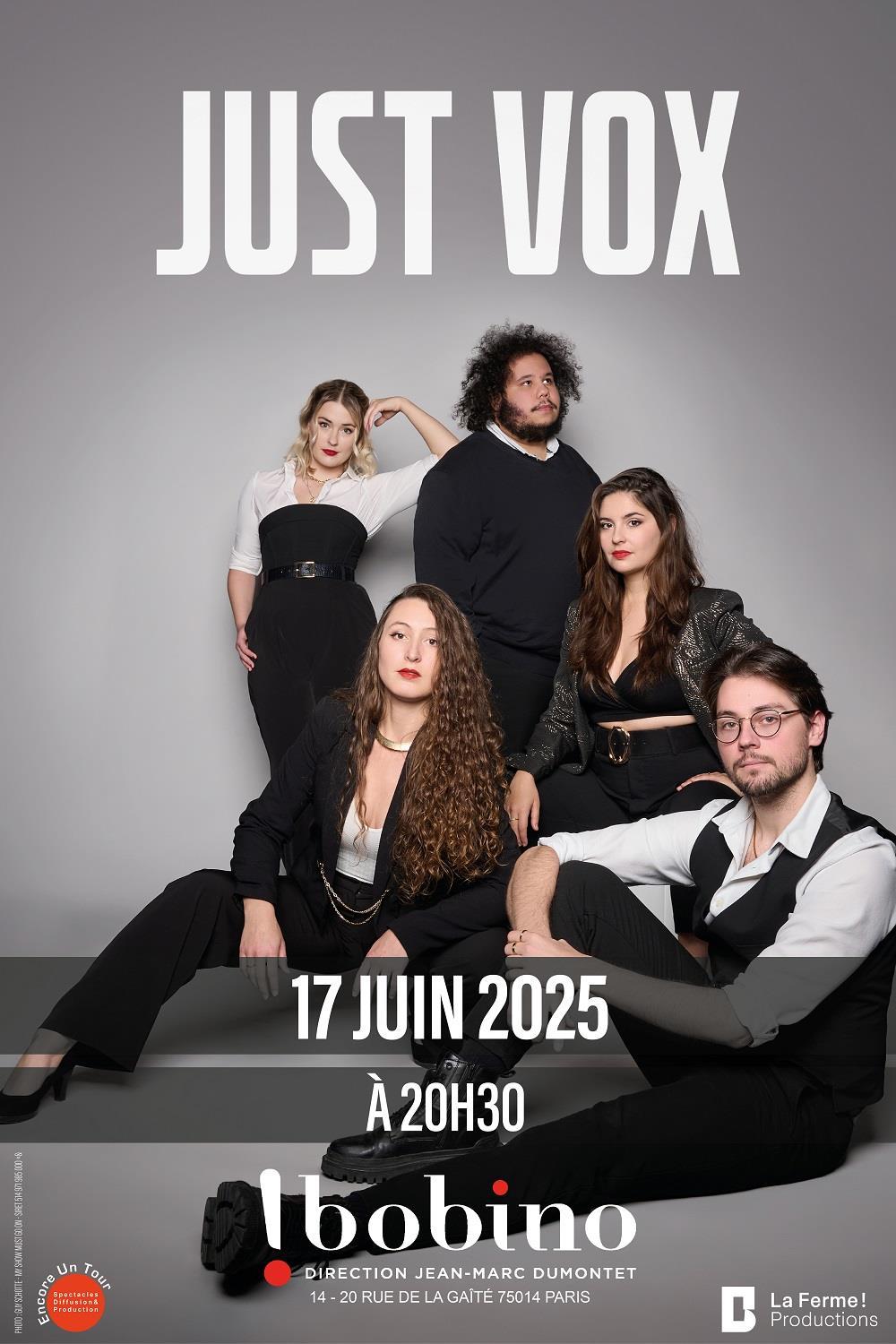 Venez vivre avec nous, la suite de l’aventure Just Vox. Et laissez-vous surprendre par leurs arrangements uniques qui vous feront (re)découvrir autant de chansons que vous pensiez connaître.