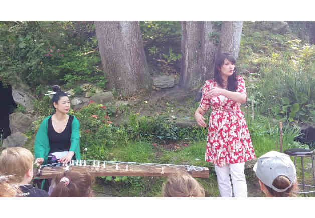 Le public choisit une carte qui lance le défi à la conteuse. La musicienne chante, la conteuse raconte ! Un voyage à travers les saisons : les secrets de la carpe, le mystère de la bouilloire, le vieux sage qui fait fleurir les arbres... Le défi relevé, une nouvelle carte est lancée !