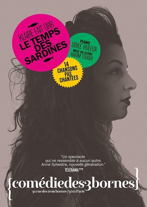 Le temps des sardines est un spectacle à peu près musical dans lequel Klaire fait Grr interprète ses propres chansons sans les chanter, un micro à la main et une Odile Huleux au clavier.