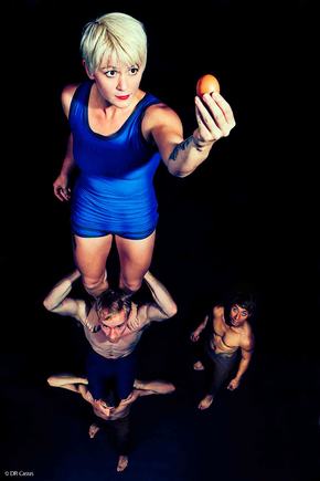 3 hommes et une petite femme défient les lois de la gravité. 1 œuf, 1000 portés, 15 000 spectateurs déjà debout pour applaudir ce nouveau cirque.