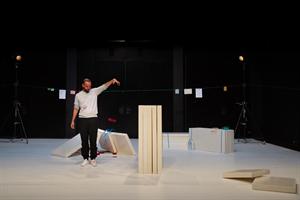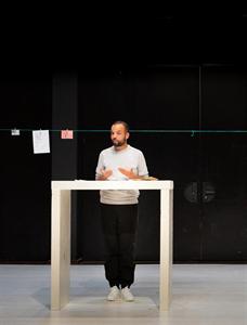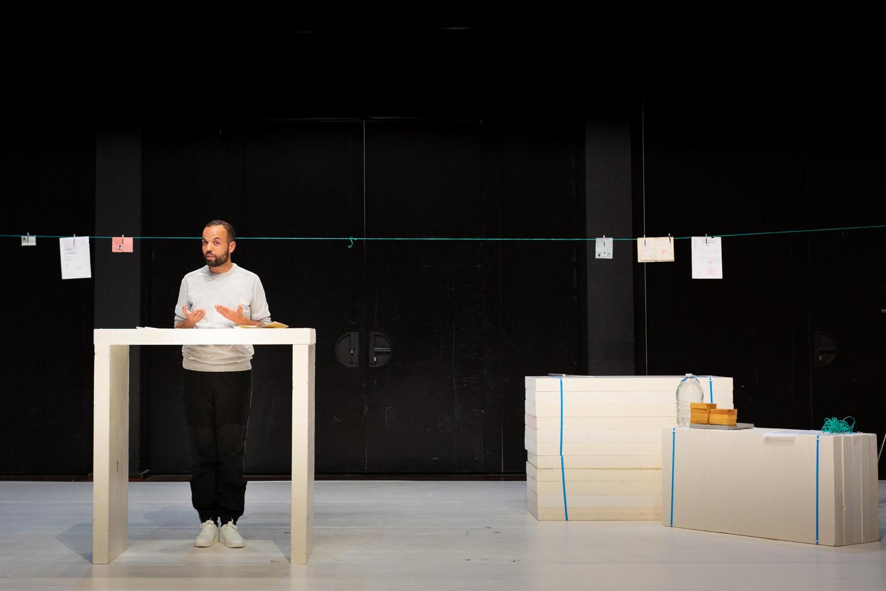 Sur scène, l'artiste Salim Djaferi déroule un fil de définitions peu à peu déplacées par la colonisation. Mais après les mots, le réel, violent, intervient : du sang, des effondrements. Un autre langage, plastique et visuel, s'invite et complète cette reconstitution de la mémoire.