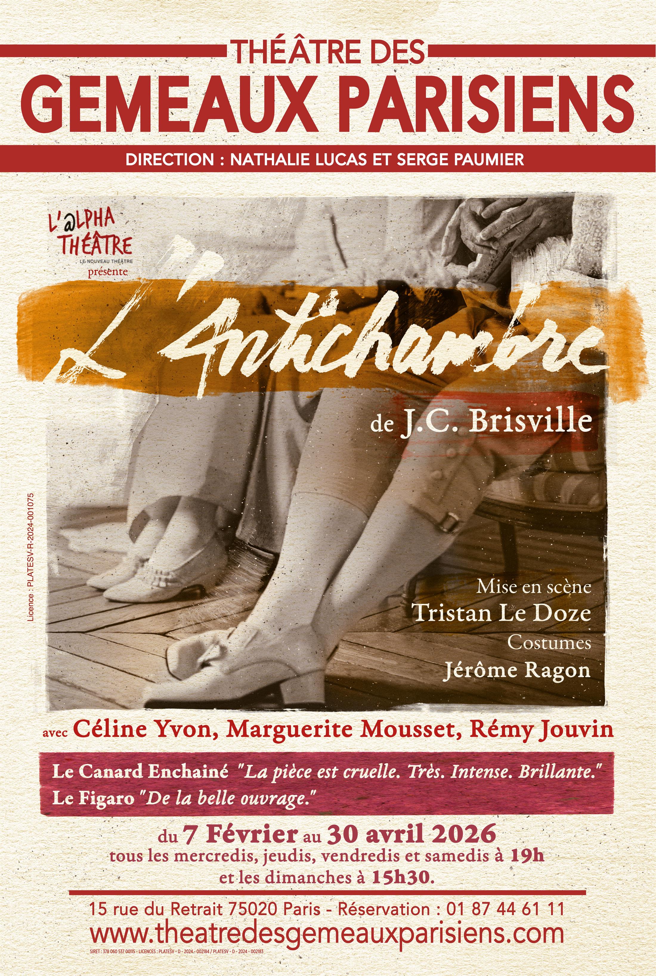 Je ne connaissais pas ce joli théâtre que j’ai découvert grâce à un article sur lebonplanparisien, la pièce de l’antichambre fait écho à ma l’architecture du théâtre du Ranelagh avec beaucoup de cachet. Le texte et l’interprétation est de qualité !