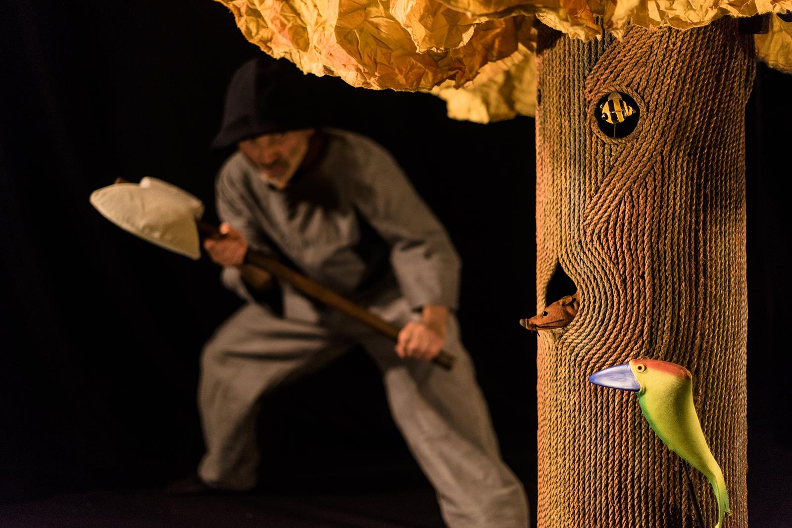 Un bûcheron a décidé d’abattre l’Arbre Roux, un tout jeune arbre joyeux et animé.