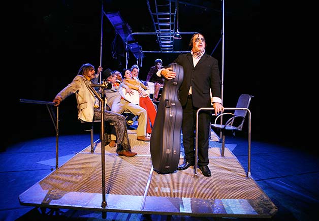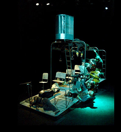 Dans un univers de bande dessinée, le spectacle est porté par un choral d’acteurs, prisonniers dans une machine bringuebalante qui roule à toute allure : virages serrés, accidents frôlés, sauts, cahots, secousses, coups de freins brutaux, tonneaux, têtes à queue… le bus roule à toute allure… vers l’enfer ?
