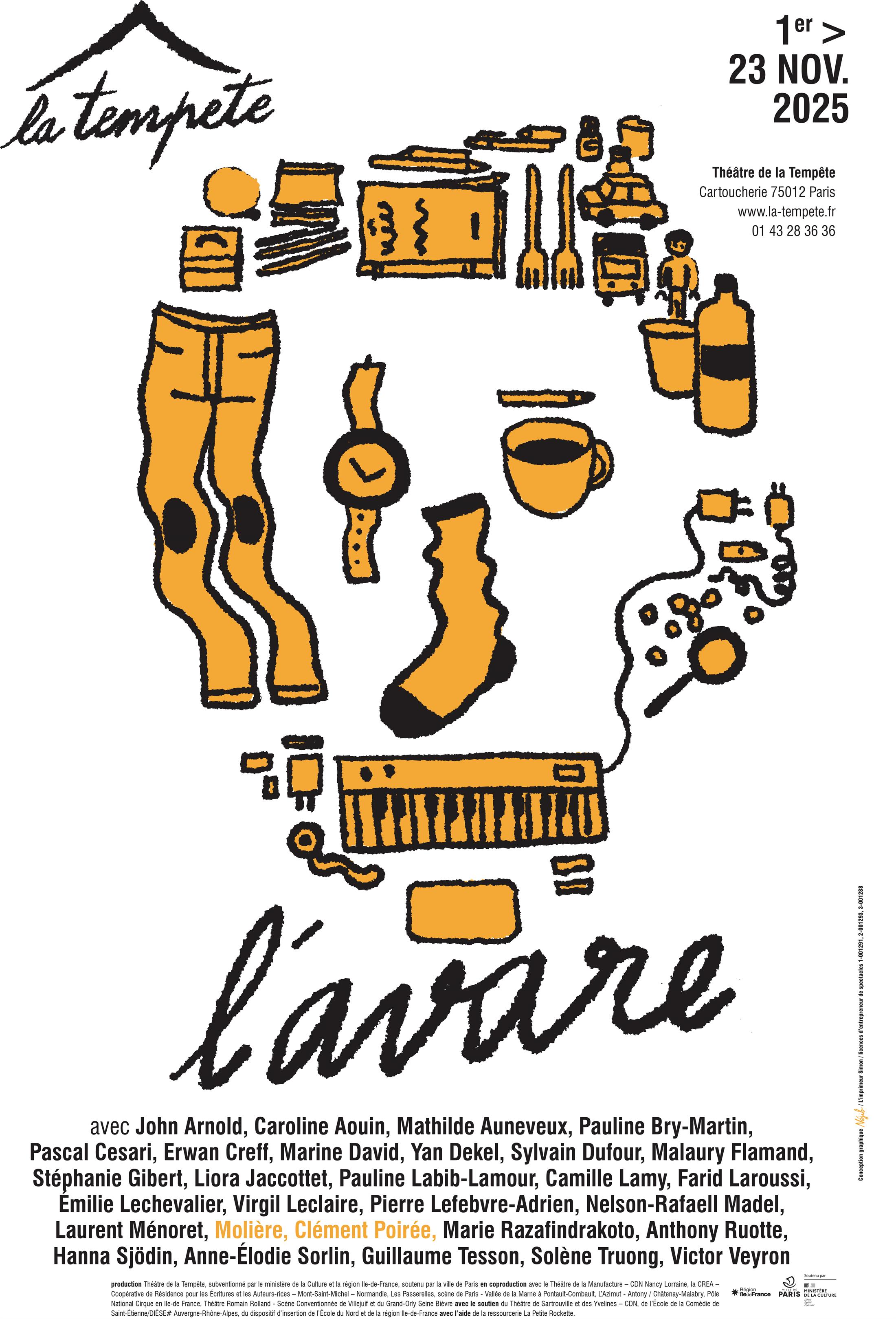 Jouer avec peu, donner beaucoup ! Dans L'Avare mis en scène par Clément Poirée, les comédiens démarrent avec rien… sauf avec ce que le public leur offre chaque soir. Pour un théâtre participatif, festif et fidèle au texte de Molière, où chaque représentation est unique et où tout finit par être redistribué. À partir de 10 ans