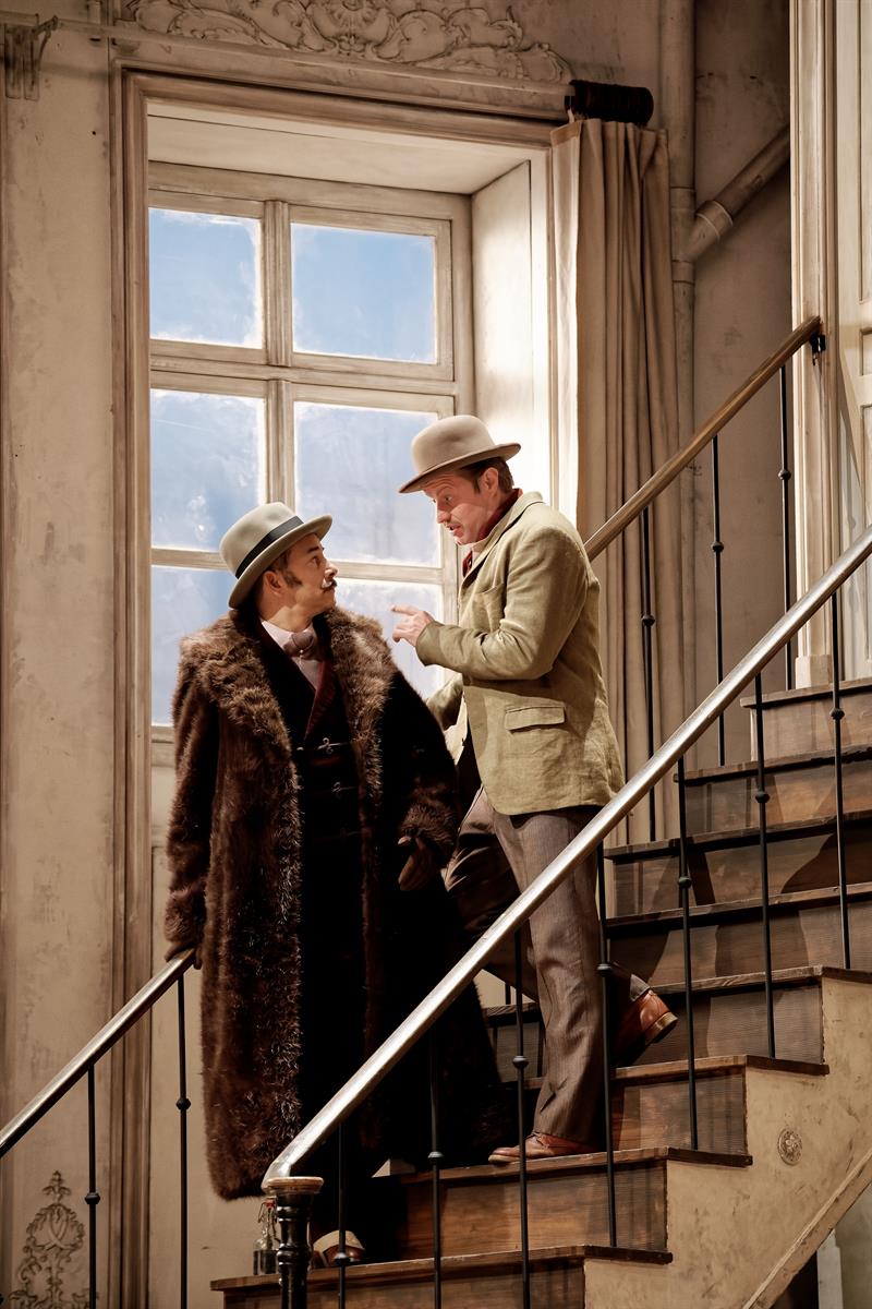 Voilà une pièce méconnue de Goldoni, qu’on aurait un peu de mal à classer selon la terminologie de Vinaver : elle est à mi-chemin entre les « pièces-machines » et les « pièces-paysages ». La plus grande partie de la pièce nous dresse le paysage de cette école de danse dont le maître un peu ringard et pas mal avare est magnifiquement incarné par un Denis Podalydès fabuleux. Cette première partie manque certes un peu de rythme mais nous donne à voir tous les talents de la troupe de la Comédie Française. Dix-huit comédiens de grand talent et autant de personnages entre lesquels se nouent de multiples actions. Dans les dernières scènes, toutes ces actions se cristallisent dans un final implacable.