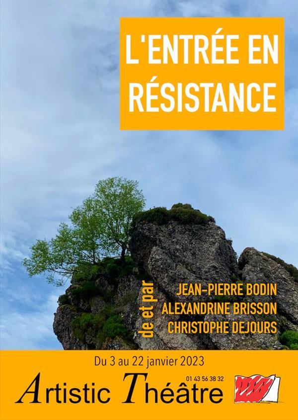 Sur scène, en s'appuyant sur le parcours d'un forestier, Christophe Dejours, chercheur, psychanalyste, fondateur de la psychodynamique du travail, le comédien Jean-Pierre Bodin et la réalisatrice Alexandrine Brisson s'interrogent : au sein de son entreprise, comment permettre à la pensée de se remettre en marche ? Comment reprendre la main sur l'aliénation ? Par l'union du théâtre et de la recherche critique en sciences du travail, L'Entrée en résistance pose la question de l'émancipation individuelle et collective. Et suggère qu'il n'y a pas de fatalité !