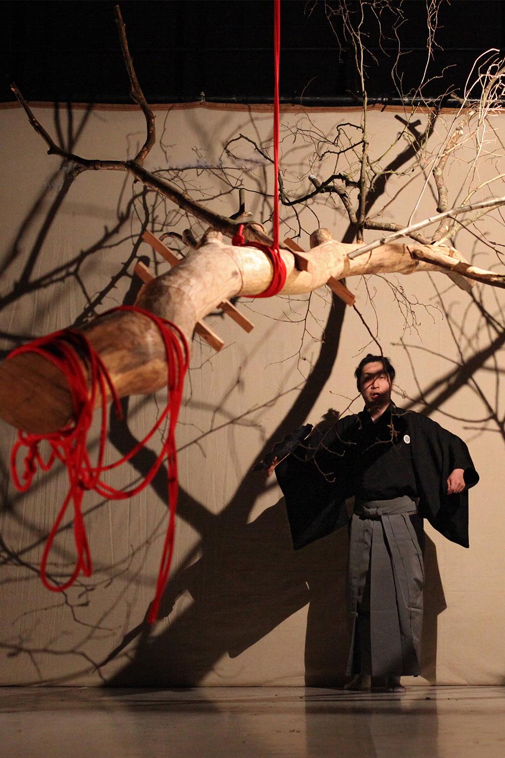 Sur scène, deux comédiens, français et japonais, se transmettent des bribes de leurs théâtres : le théâtre occidental et le théâtre nô, puisant ses racines dans une tradition millénaire. Ils se racontent des histoires et dévoilent leurs mythologies. Ils convoquent des personnages qu’ils ont joué ou bien ceux qui ont été leurs maîtres : des hommes comme des arbres.