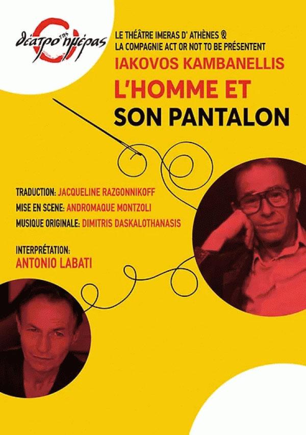 Le hasard est toujours une belle rencontre. Cet après-midi, ai vu, par hasard, "L'homme et son pantalon" au théâtre de l'Epée de bois. Ai découvert un texte et un auteur, Iakovos Kambanellis, magnifiquement porté - cela va sans dire - par Antonio Labati. Autour du comédien, une magnifique équipe, Andromaque Montzoli (mise en scène), Dimitris Daskalothanasis, (musique), Jacqueline Razgonnikoff (traduction. Oui c'est un texte grec, d'un auteur grec, un grand auteur de théâtre de notre temps). Allez vous promener à la Cartoucherie, Allez, Allez,Allez ! Ouvrez la porte et vous verrez. C'est bien cela le théâtre !