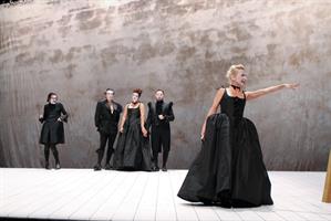 Dans un espace presque vide qui évoque le théâtre côté scène, coulisses et salle, la scénographie signée Laurent Pelly et Matthieu Delcourt s’amuse à désorienter les personnages et, souvent, les spectateurs… Qui sera la prima donna ? Sur scène, un casting ébouriffant pour répondre à la question, dont Natalie Dessay et les instrumentistes de l’ensemble baroque Masques dirigé par Olivier Fortin.