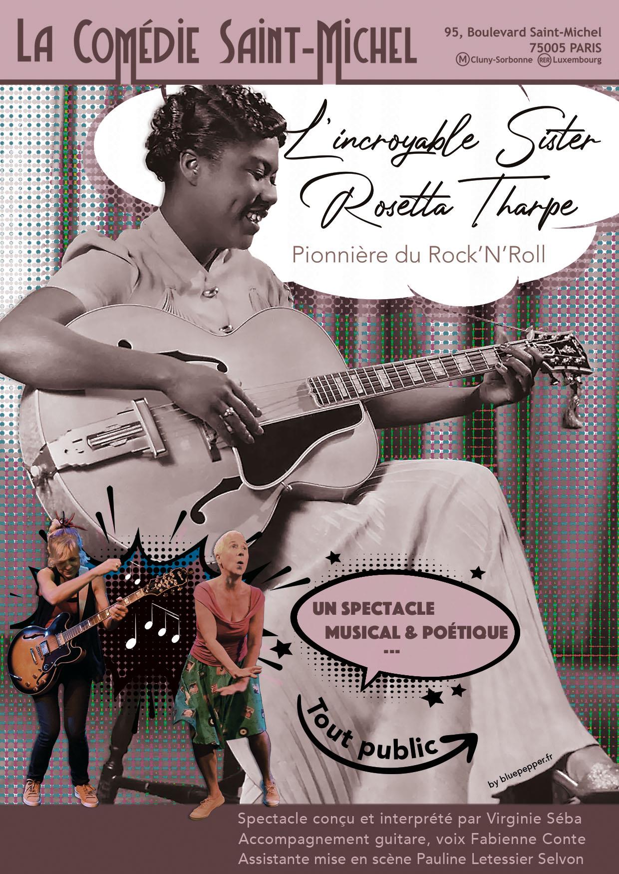 Mêlant slam, musique et vidéo, Virginie Séba, accompagnée de Fabienne Conte à la guitare, raconte avec humour, le destin hors-norme de Sister Rosetta Tharpe (1915-1973) exceptionnelle guitariste et chanteuse de gospel, pionnière du rock'n roll bien avant Elvis Presley, aux prises de position audacieuses et risquées dans une Amérique ségrégationniste et patriarcale.