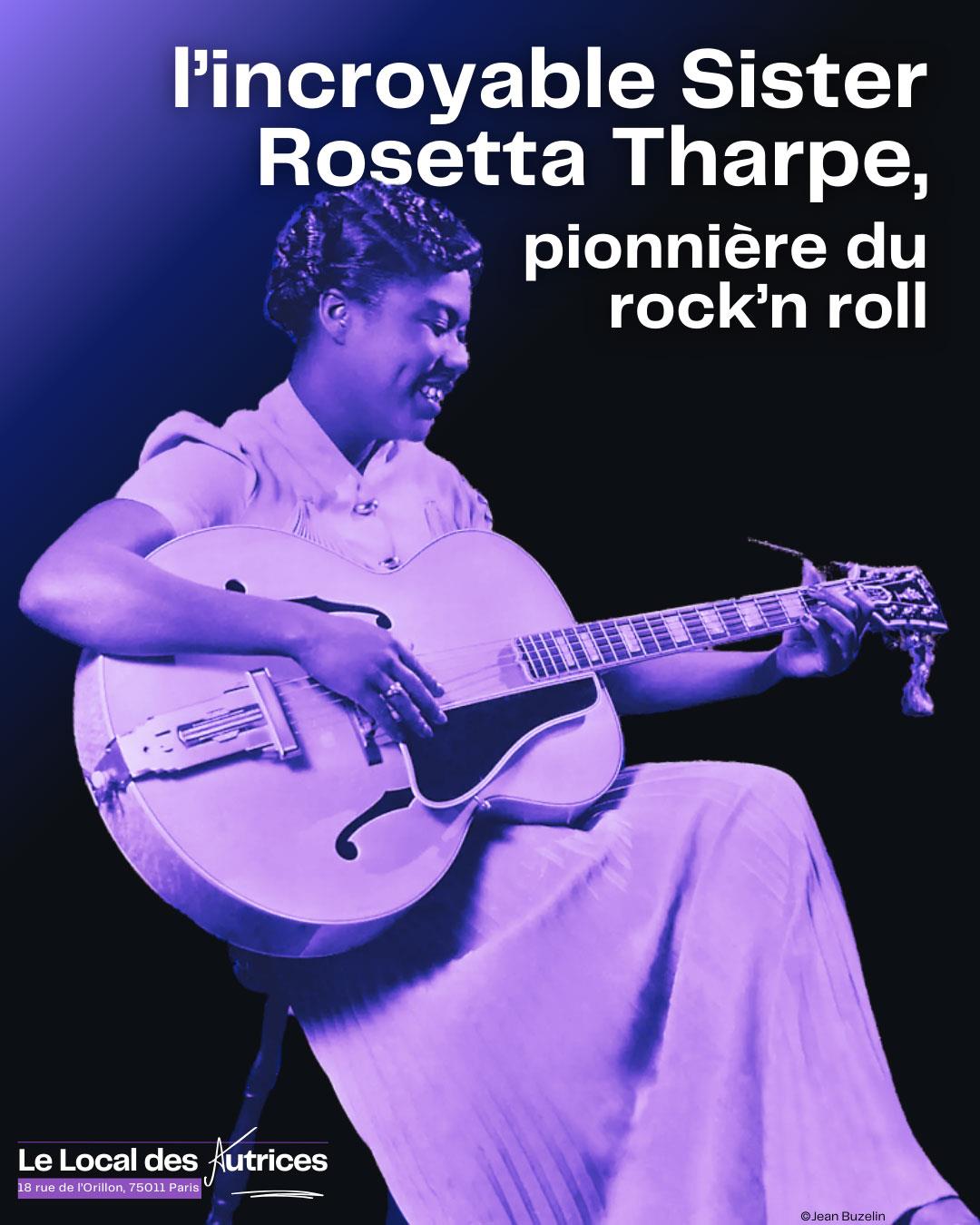 Mêlant slam, musique et vidéo, Virginie Séba, accompagnée de Fabienne Conte à la guitare, raconte avec humour, le destin hors-norme de Sister Rosetta Tharpe (1915-1973) exceptionnelle guitariste et chanteuse de gospel, pionnière du rock'n roll bien avant Elvis Presley, aux prises de position audacieuses et risquées dans une Amérique ségrégationniste et patriarcale.