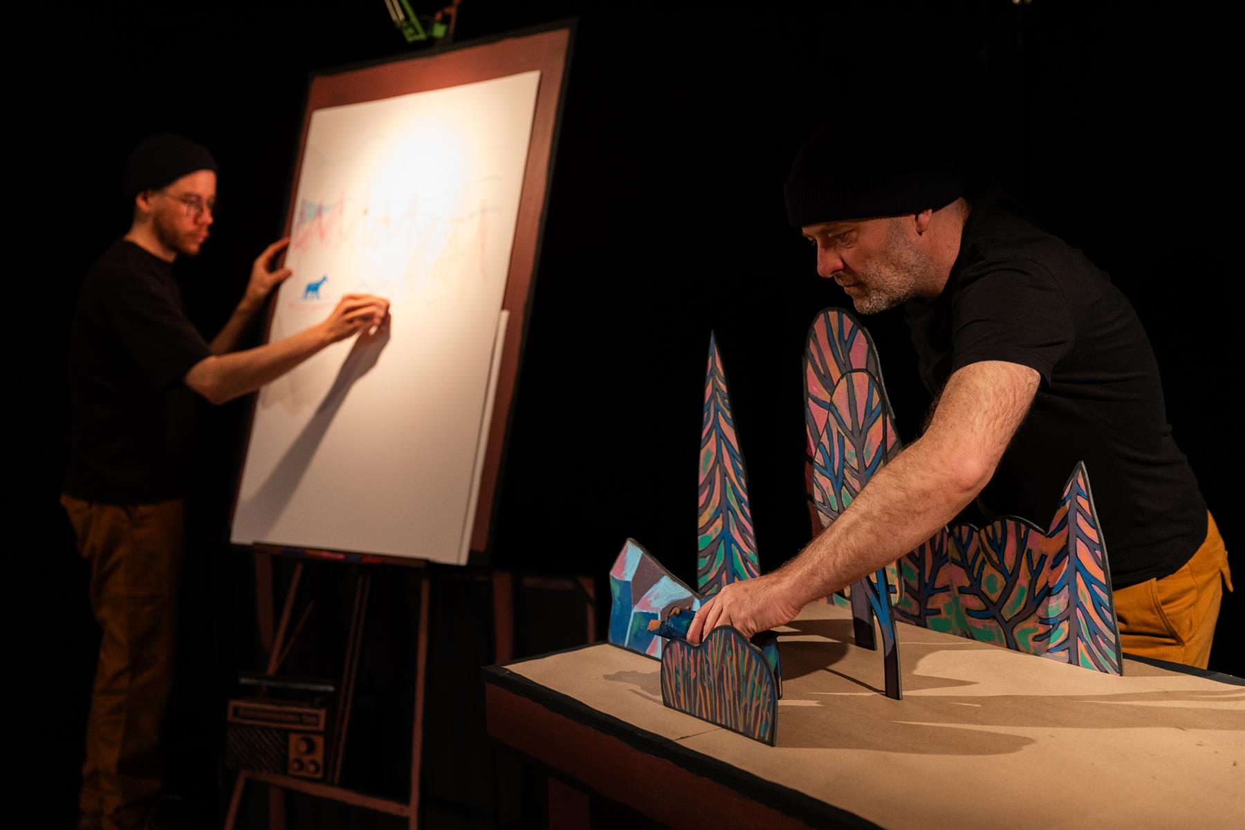 D’après l’album de F. Tashlin Mais je suis un ours, un spectacle drôle et poétique associant le dessin en direct à l’animation de marionnettes.