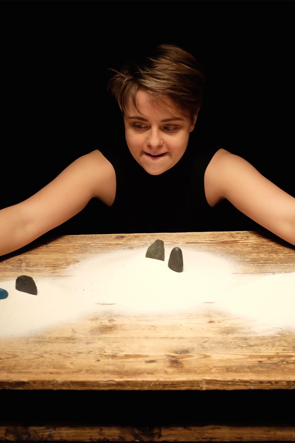 Sable, gravillons, galets… représentent à tour de rôle le Big Bang, les Homo sapiens, les planètes et nous plongent dans une conférence fulgurante et ludique.