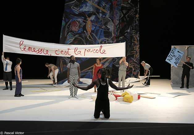 Mais d’où arrivent les acteurs de Valère Novarina ? D’une antichambre qui sépare la scène du lieu de la catastrophe ? Du lieu de l’horreur ? Ou des coulisses d’un guignol ? Après L’Origine rouge, L’Acte inconnu et La Scène, naissance d’un nouveau spectacle pour le grand théâtre.
