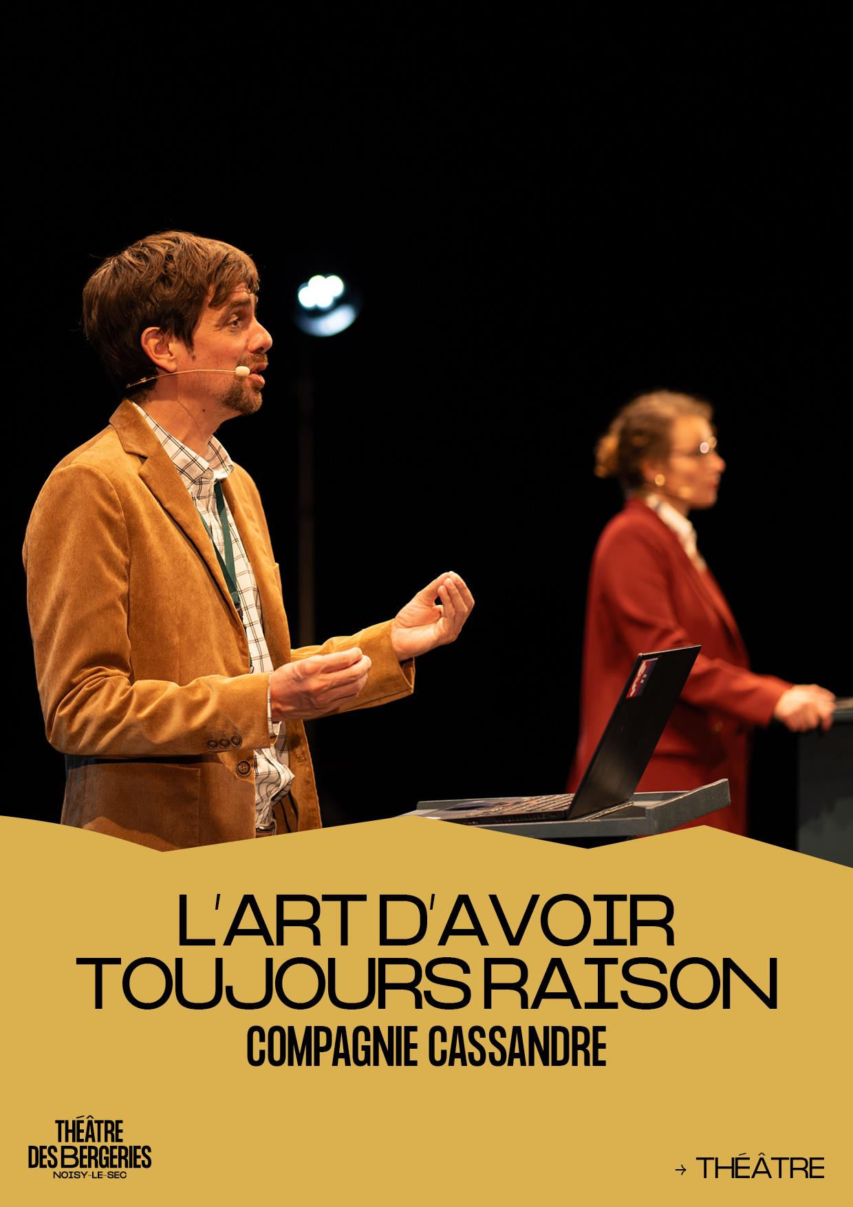 L’art d’avoir toujours raison livre une « Méthode simple, rapide et infaillible pour emporter une élection ». Sur scène, deux scientifiques issus du GIRAFE – Groupe International de Recherche sur l'Accession aux Fonctions Électorales – prétendent avoir trouvé un procédé qui, suivi à la lettre, permet de gagner n’importe quel affrontement électoral. Ils exposent leurs techniques devant un parterre de candidats aux futures élections : vous, cher public !