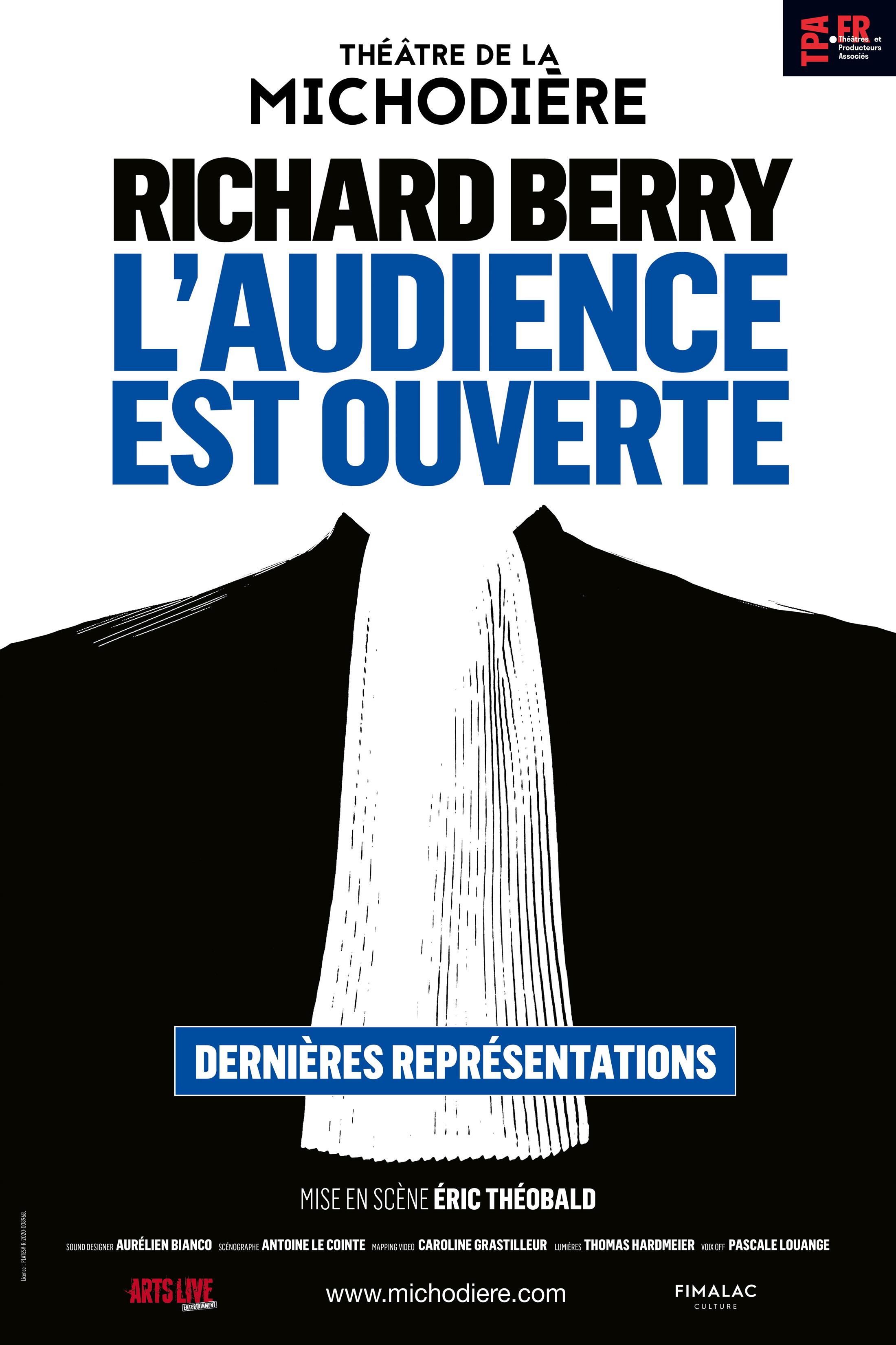 Richard Berry est de retour sur la scène du Théâtre de la Michodière, dans un nouveau spectacle, une création intitulée L’audience est ouverte, mise en scène par Éric Théobald.