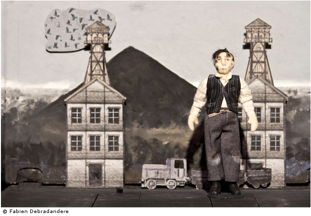 C’est l’aube, un accordéon chasse les restes de la nuit. Akosh, 8 ans, vient d’être embauché à la mine de charbon, dans le nord de la France. L’accordéon pénètre alors huit cent mètres sous terre… Des marionnettes surgissent des décors : des mineurs, les « gueules noires », un ingénieur, une lampiste…
