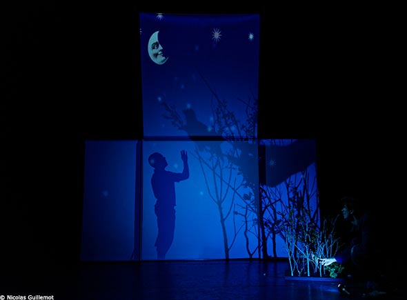 La compagnie Le bel après-minuit, créée et dirigée par Bénédicte Guichardon, explore avec délicatesse les territoires de l’enfance. La mise en scène est ici proche d’une écriture cinématographique : des séquences qui s’enchaînent, des images oniriques créées par les projections et ombres portées, une scénographie légère qui permet de voyager d’un espace à l’autre, le jeu des comédiens qui s’appuie sur le langage du corps. Un spectacle à la fois tendre et acidulé sur les peurs enfantines. Pas l’ombre d’un doute, petits et grands en sortiront émerveillés !