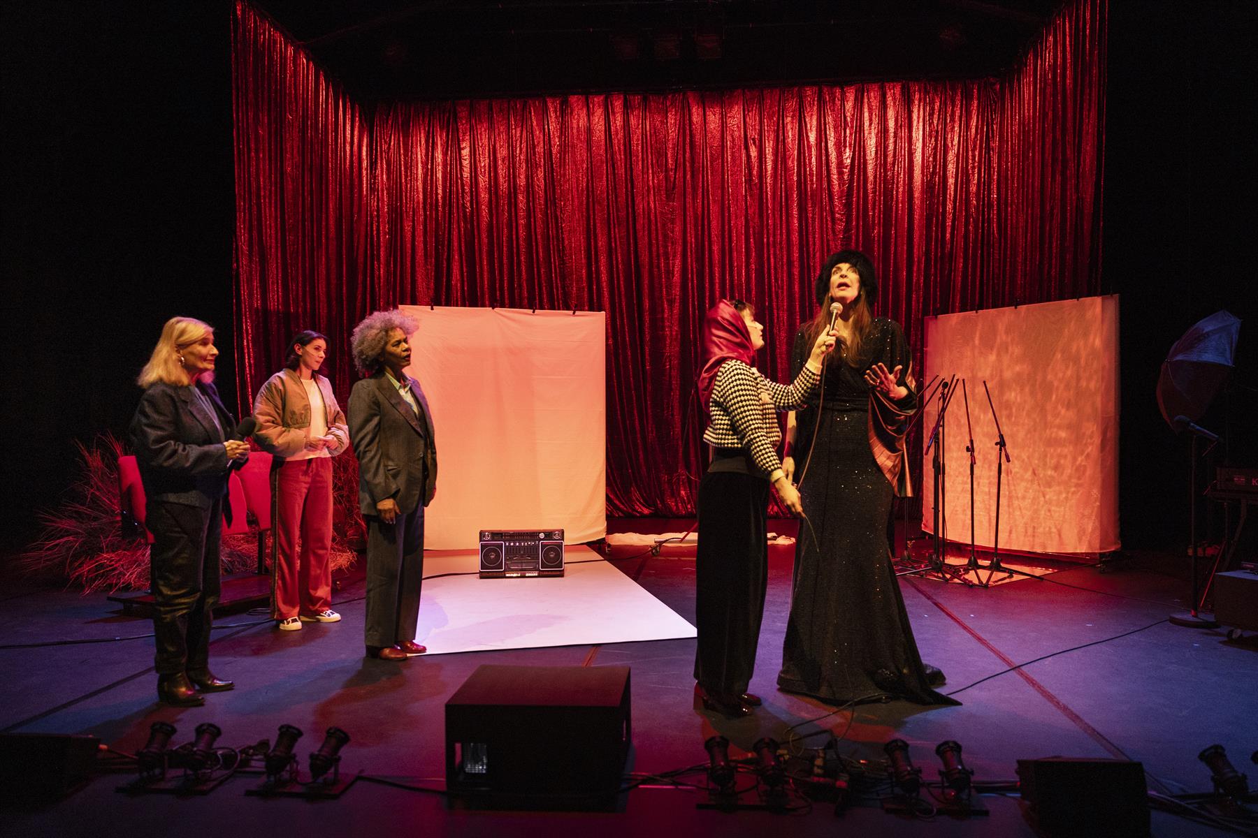 Le plateau est conçu comme un ensemble de « studios de l’imaginaire ». Un lieu où se fabriquent, se rejouent et se transforment les souvenirs. À la manière de cabines mentales ou de chambres d’écoute, ces studios permettent de faire émerger les images intérieures, les paysages sonores qui habitent chacune. Le plateau devient dès lors, un espace de révélation sensible, où la musique et les images convoquées agissent comme des déclencheurs de mémoire, des portes d’entrée vers l’intime. Un lieu de montage et de remix, où les mémoires ici narrées, véritables ou fictives, se composent en direct, où le réel et l’imaginaire se contaminent, et où la scène agit comme une table de mixage des vies.