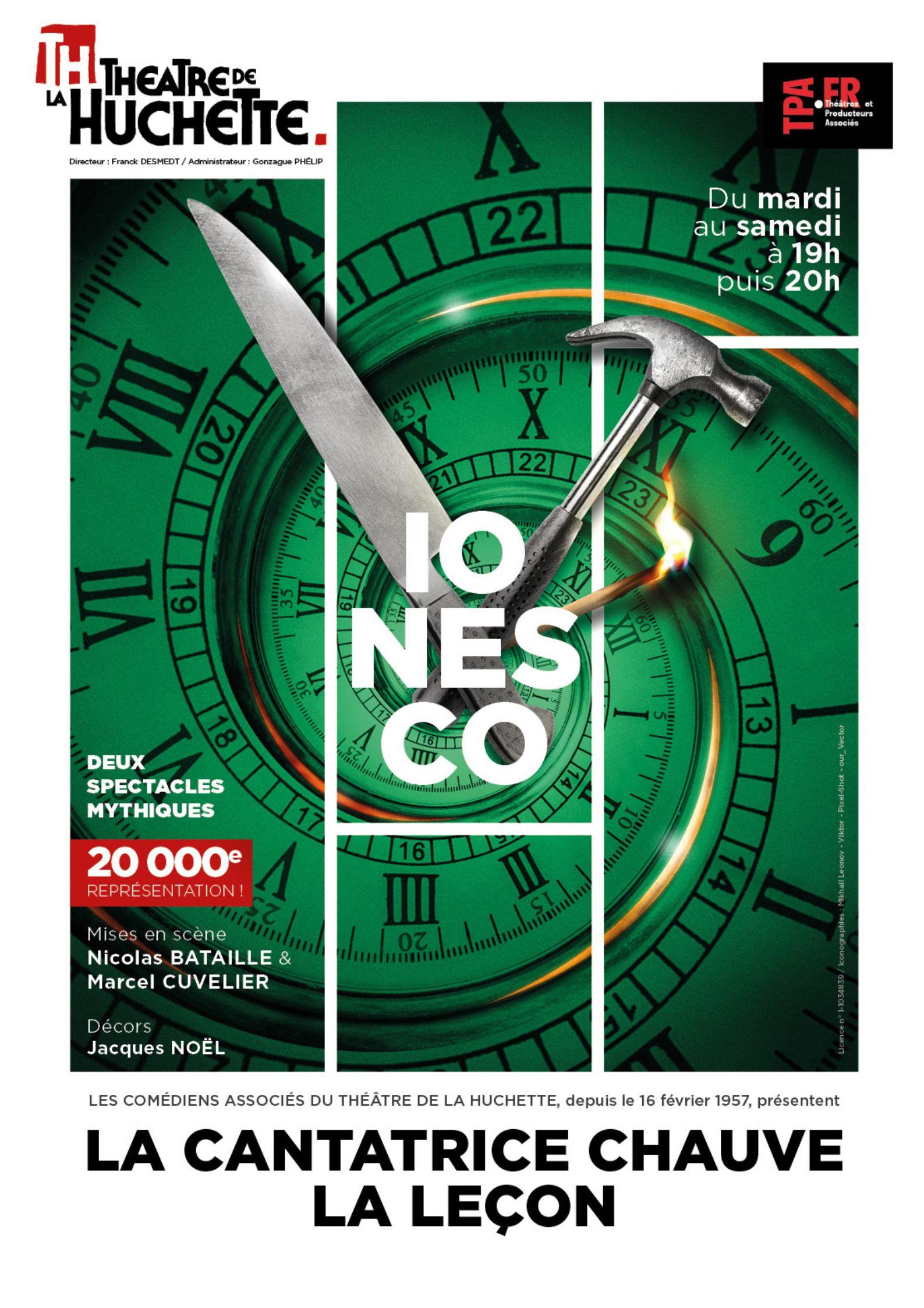 L’accueil est très mitigé mais lorsque ces deux pièces s’unissent une seconde fois le 16 février 1957 au Théâtre de La Huchette, l’incroyable se produit. Le Tout-Paris se presse pour découvrir cet objet théâtral non identifié. Depuis près de soixante ans, le Spectacle Ionesco est devenu une institution.