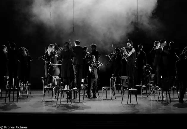 Poignant, hypnotique et saisissant, ce nouveau spectacle chorégraphique invite à un voyage mystique entre la vie et la mort, à travers les thèmes de la mémoire, de la perte, de l’espoir et de l’abandon. Sur scène, trente musiciens dansent et jouent par cœur deux grands chefs-d’œuvre orchestraux : la Suite du Bourgeois Gentilhomme de Lully et la 40e Symphonie de Mozart. Ils accueillent à leurs côtés, le danseur et chorégraphe Juan Kruz Díaz de Garaio Esnaola. Ensemble, ils nous emmènent à travers un périple bouleversant, qui débute dans la lumière avec la grâce de la musique de Lully et finit dans le tourment et la passion de l’une des dernières œuvres de Mozart.