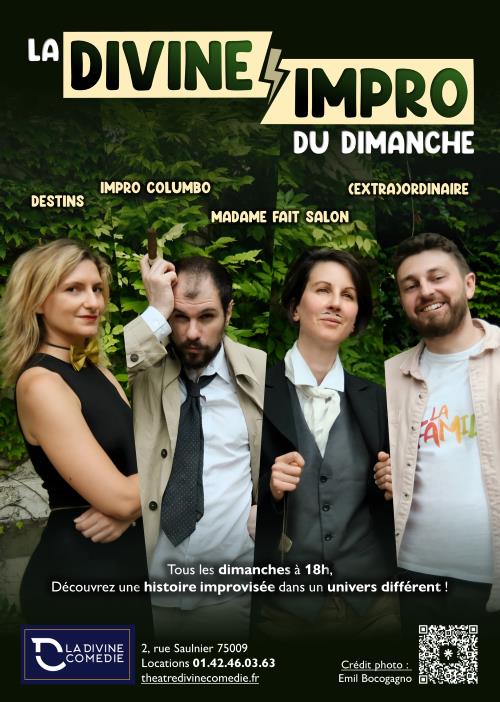 Tous les dimanches à 18h, découvrez une histoire improvisée dans un univers différent ! Avec en alternance Destins, Madame fait Salon, (Extra)Ordinaire et Impro Columbo.