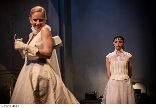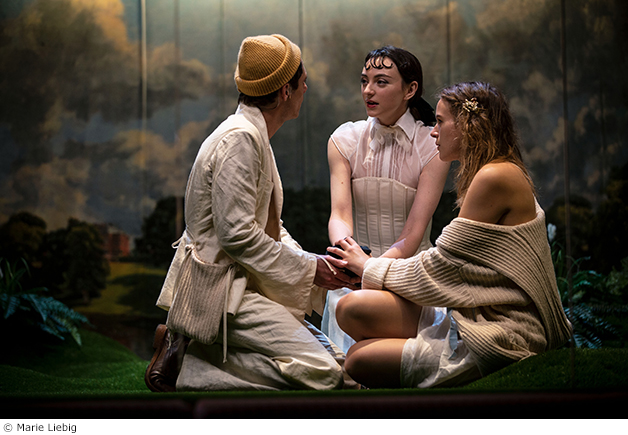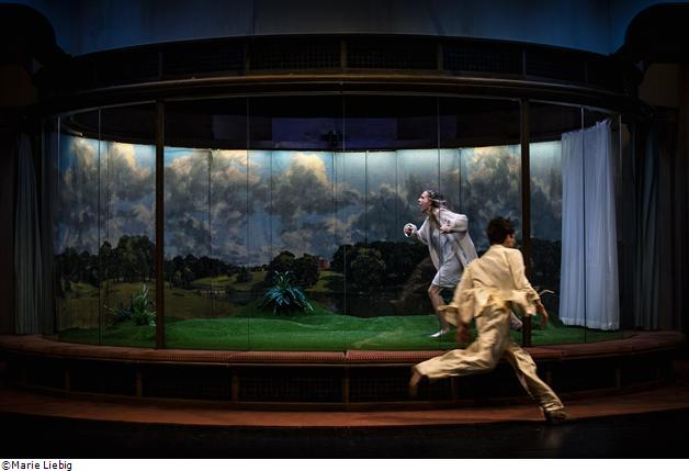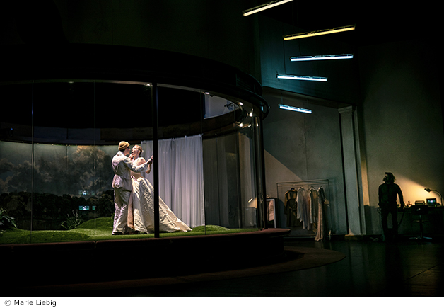 Galin Stoev propose une lecture contemporaine de La DOUBLE inconstance en s’appuyant sur un concept très actuel : la post-vérité. Servie au plateau par une scénographie pensée sur la base d’un miroir sans tain, la mise en scène exploite l’opposition flagrante chez Marivaux de deux conceptions de l’amour issues de deux mondes différents : le monde de ceux qui gouvernent et celui de ceux qui subissent.
