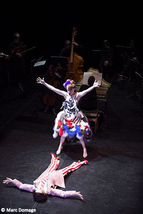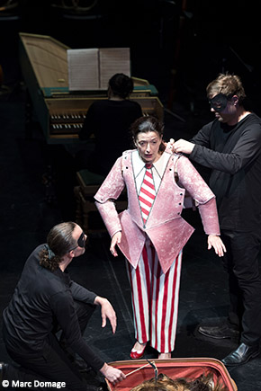 C'est cette modernité dont s'empare le compositeur Gérard Pesson dans une mise en perspective contemporaine. Accompagné du poète Pierre Alferi qui réinvente le triangle amoureux, il compose des additions à la partition originale pleine de facéties d'Antoine Dauvergne, interprétées par les onze musiciens de l'ensemble baroque Amarillis, deux sopranos et un ténor. Mêlant couleurs, fantaisie et raffinement, la plasticienne Annette Messager s'associe au projet en créant, pour la première fois, des costumes pour la scène.