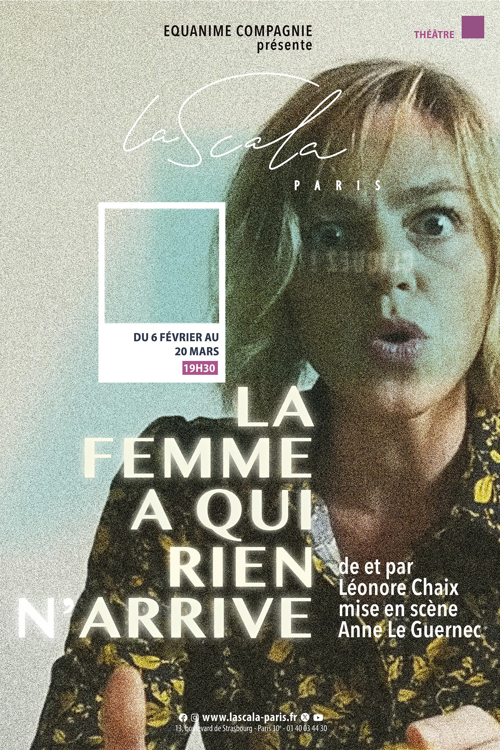Après le succès de Déshabillez-Mots, les chroniques de France Inter adaptées au théâtre (écrites avec Flor Lurienne), Léonore Chaix nous revient en solo. Elle interprète tous les personnages de ce polar métaphysique déjanté.