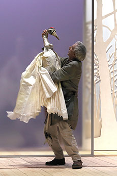 Ce spectacle d'Alain Batis, librement inspiré d'un conte zen japonais, La femme grue, fait dialoguer les arts virtuels et sonores, les marionnettes, le théâtre d'ombres, la danse, et le jeu des comédiens, pour rendre toute l'intensité dramatique de cette légende.