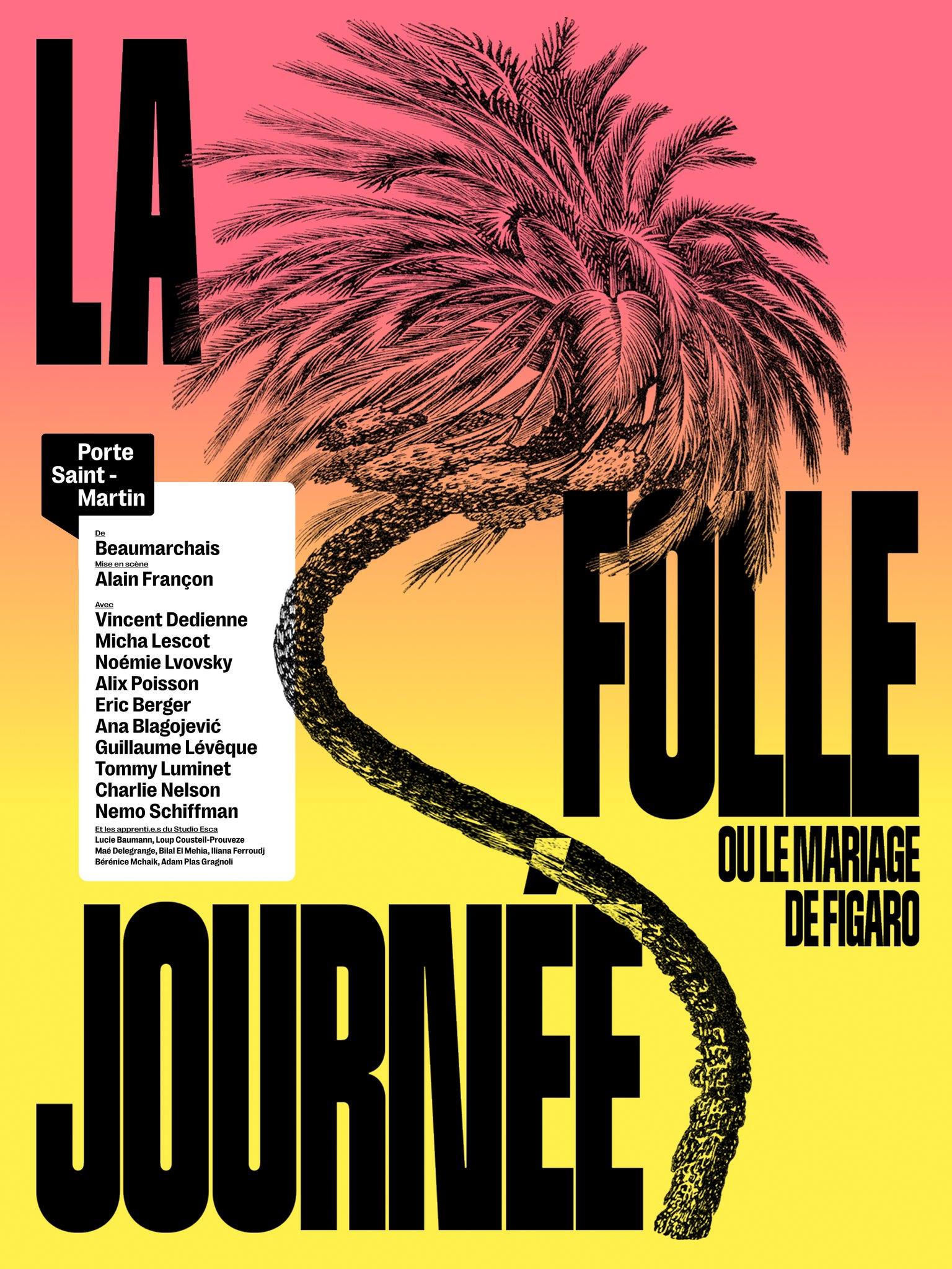 Le jour de son mariage avec Suzanne, Figaro découvre que son maître, le comte Almaviva, tente de séduire sa fiancée. Aidés de la comtesse, Figaro et Suzanne vont déjouer ses manigances à coups de ruses, de déguisements et de quiproquos. Sous la comédie vive et brillante se cache une critique des privilèges et des rapports de pouvoir, annonciatrice des bouleversements de la Révolution française. Micha Lescot et Alix Poisson interpréteront le couple Almaviva, Noémie Lvovsky sera Marcelline et le rôle de Suzanne sera confié à une jeune révélation, Ana Blagojevic.